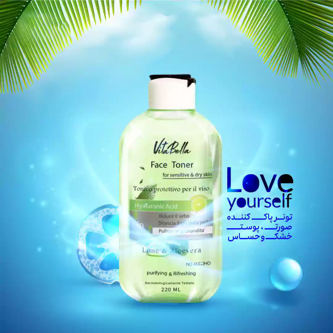 تونر برای تنظیم PH پوست، بعد از شستوشو استفاده میشود. تونر مخصوص پوست خشک ویتابلا یک محلول مایع بر پایه آب حاوی مواد مفیدی می باشد که در سلامت و تسکین پوست تاثیر بسزایی دارد. تونر ویتابلا می تواند به پاکسازی بیشتر پوست کمک کند.